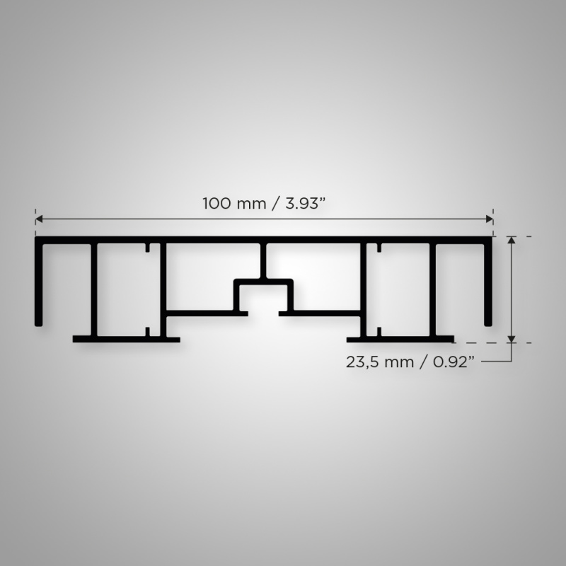 Profile for creating light boxes with single or double-sided PMMA sheets.