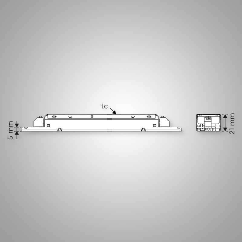 IP20 non-dimmable power supplies for integration in profiles.