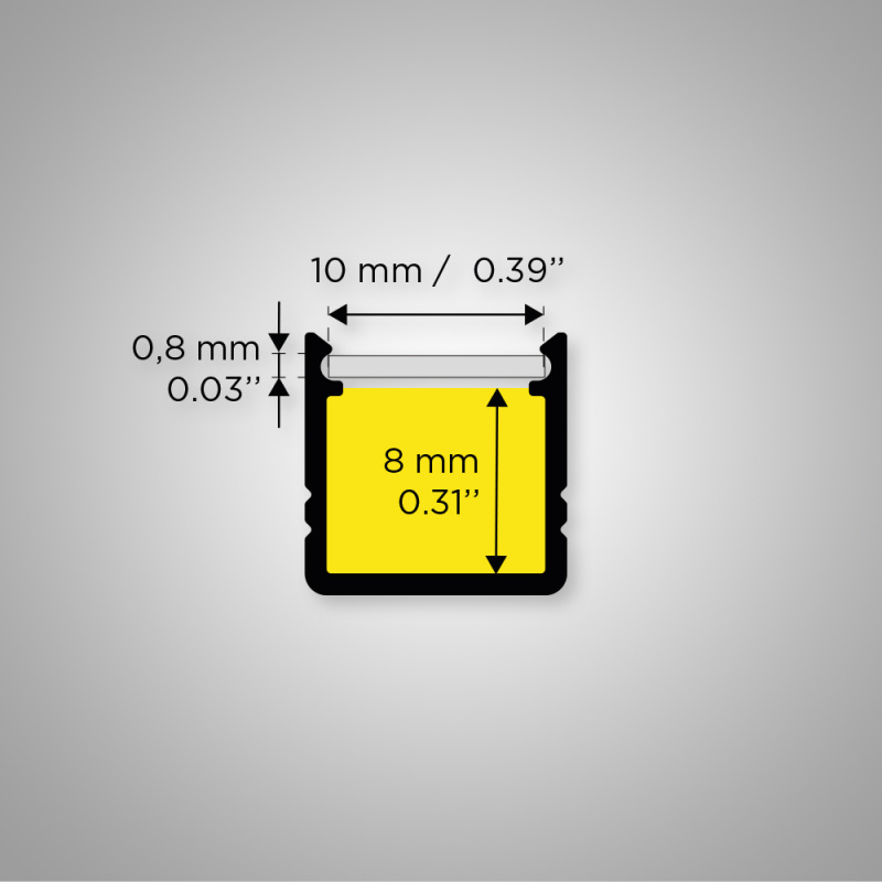 Mini profile for discreet light lines, compatible with all our FlexStrip 8mm.
