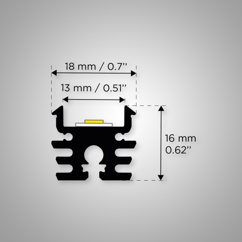 • Dimensions: 16 x 18 x 2000 mm and 16 x 18 x 3000 mm