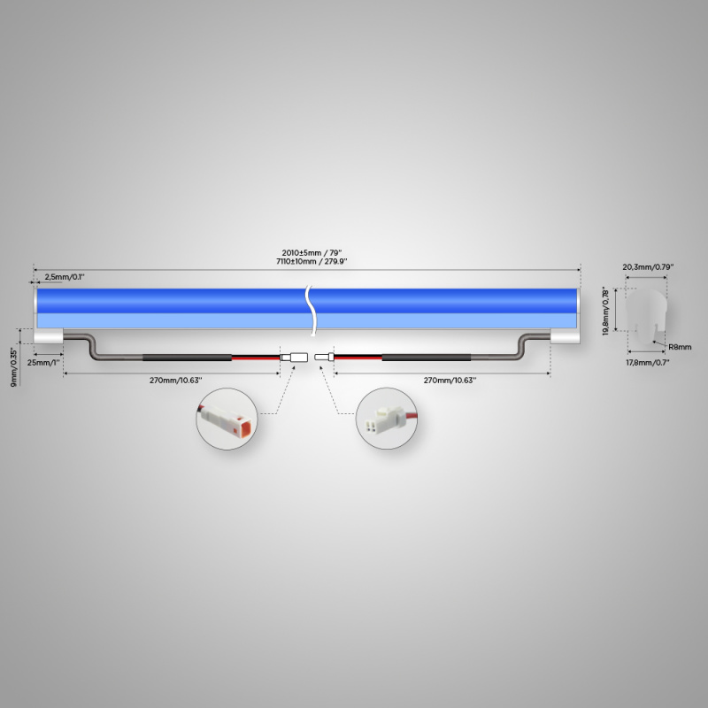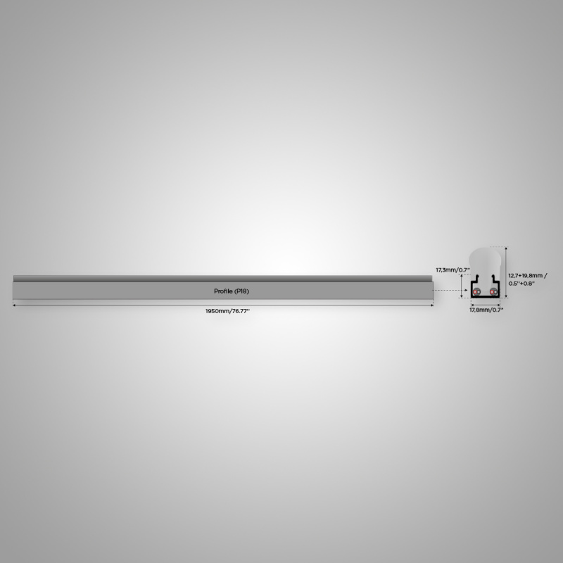 Supplied with a 1950 mm mounting profile. The same P18 profile can also be ordered separately in a length of 2000 mm.