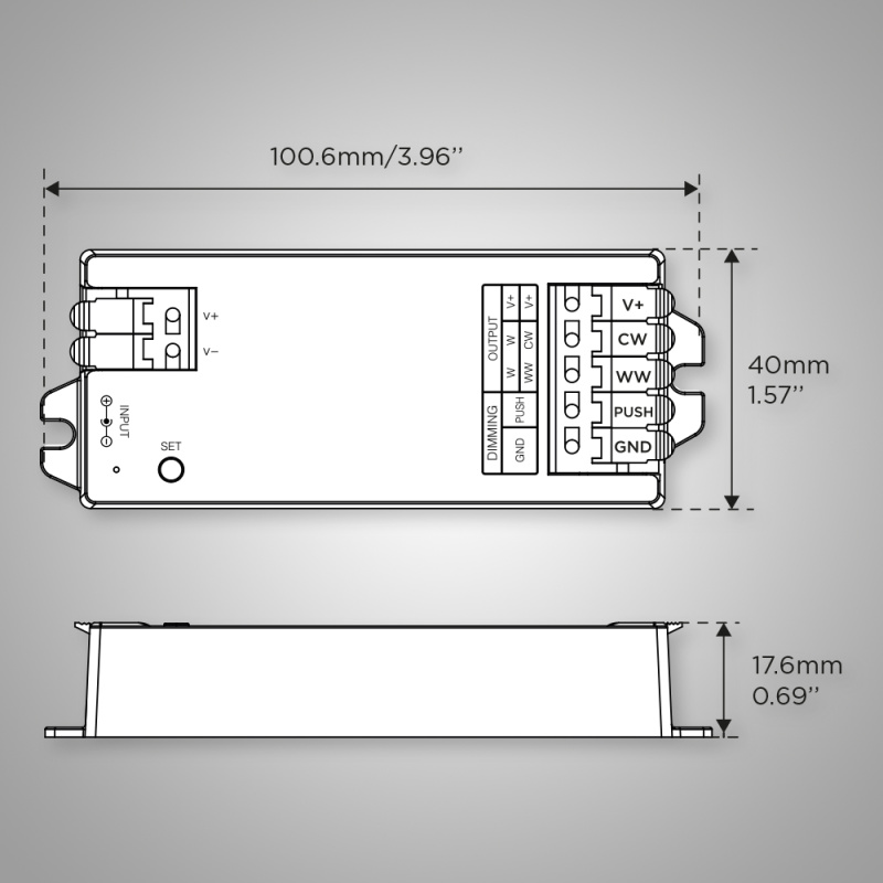 Version 12A : 100,6 x 40 x 17,6 mm