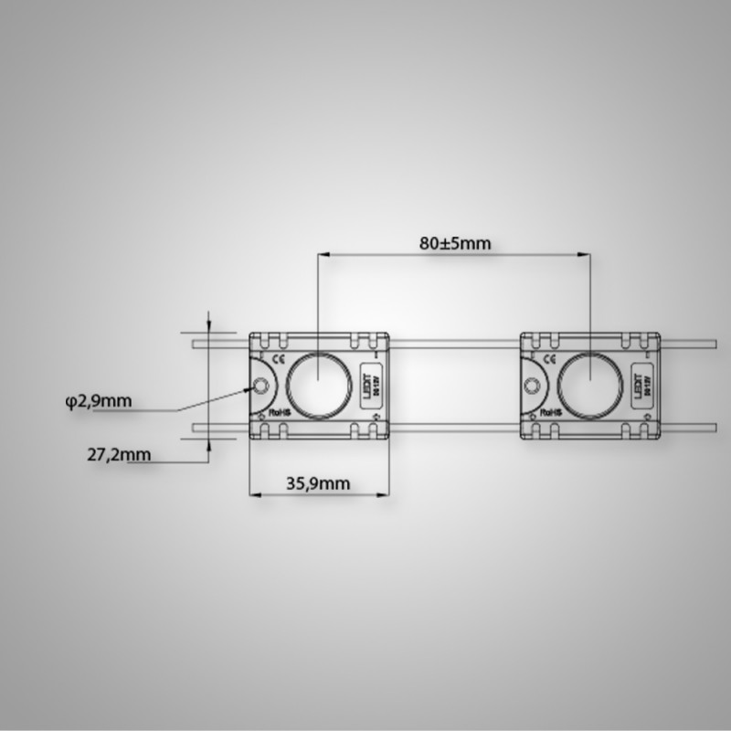 Module IP65 pour rétro-éclairage de caissons lumineux ultra fins jusqu'a 35mm d'épaisseur.