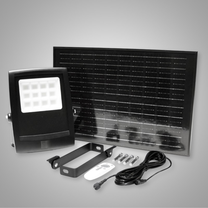 Pack projecteur LED solaire IP65 haute efficacité pour applications extérieures.